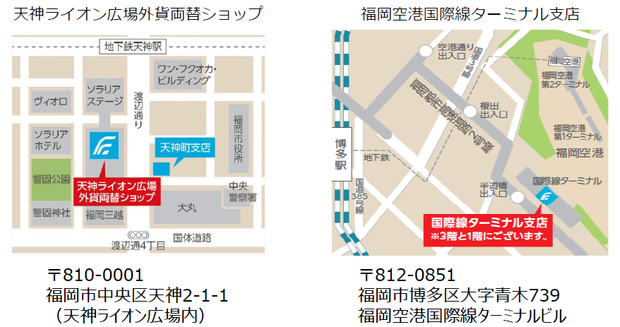 ※ マネー・ローンダリング及びテロ資金供与対策のため、外貨両替機ご利用時にはパスポートによる本人確認を行います。外貨両替をご利用されるお客さまは、ご自身のパスポートをご持参ください。なお、福岡空港国際線ターミナル支店は、有人窓口にて年中無休で営業しておりますのであわせてご利用ください。