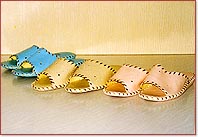 ![]() 履き心地満点の革製スリッパ |