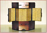 次は、韓国の骨董家具の複製品です。薬箪笥(小さな引き出しがたくさんある箪笥)や帽子入れ(モジャケース)といったものに人気があります。梨泰院(イテウォン)や仁寺洞(インサドン)の骨董品屋で買えます。値段は、ピンからキリまでありますが、帽子入れは4〜7万ウォン(約4〜7千円)、薬箪笥は10〜20万ウォン(約1〜2万円)程度でしょう。家具などはかさばるので、観光客のお土産には適さないようです。 |
