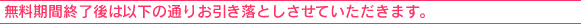| ■ | 無料期間終了後、自動的にお引き落としを開始させていただきます。 |