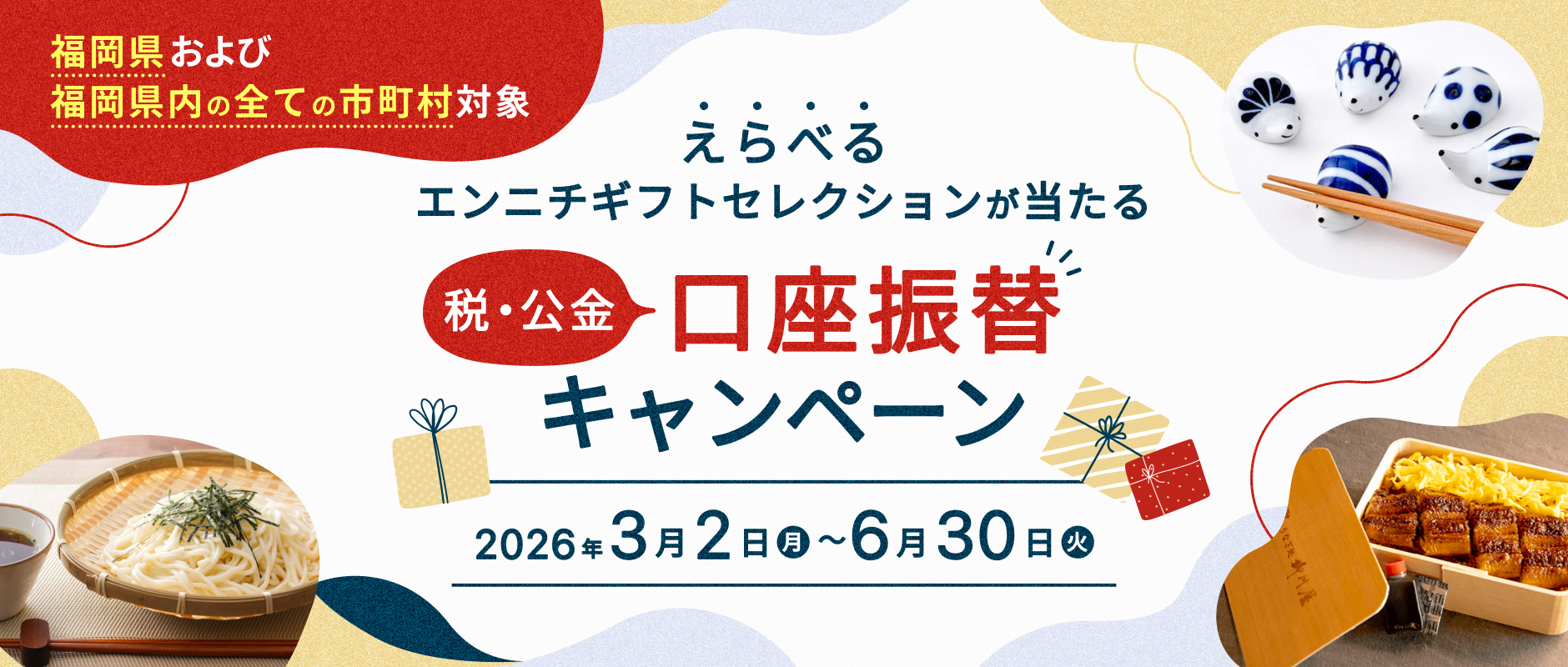 ・キャンペーン期間中に福岡銀行で、福岡県及び福岡県内の市町村のいずれかで税・公金の口座振替を新規お申込みいただいた方が対象となります。