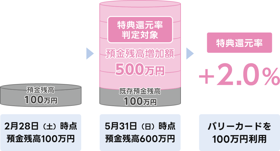 | 預金残高増加額 ※2 | バリーカード 通常還元率 |