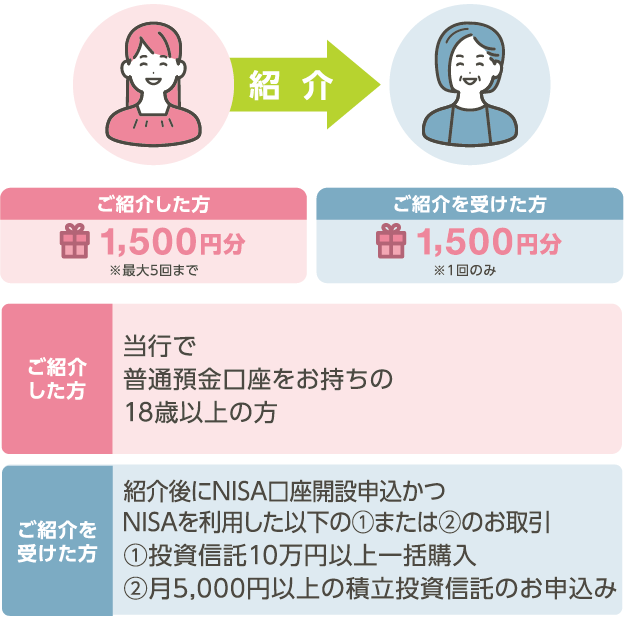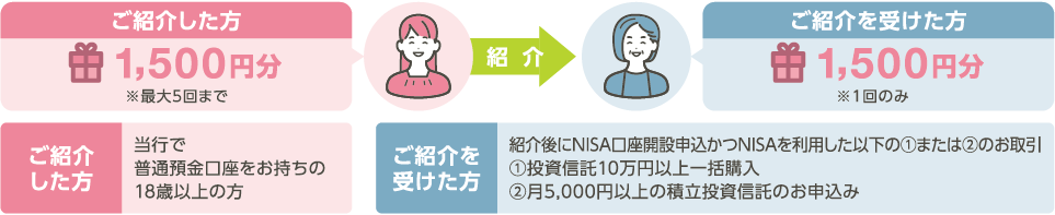 上記の対象者のうち月5,000円以上のNISAを利用した積立投資信託のお申込みが本フェア期間中に完了しており、2026年3月31日時点でNISA口座および積立投資信託の契約があること
