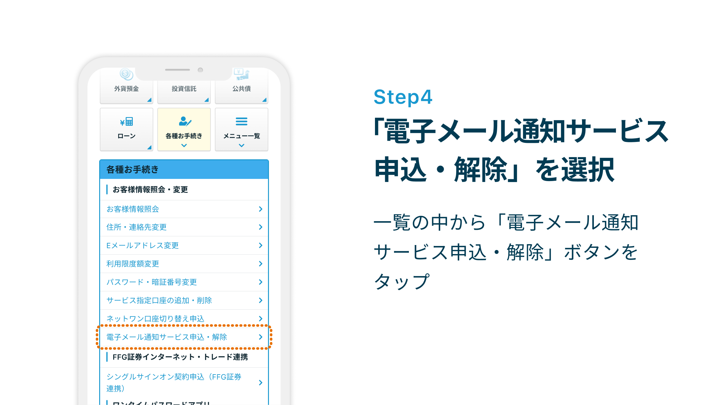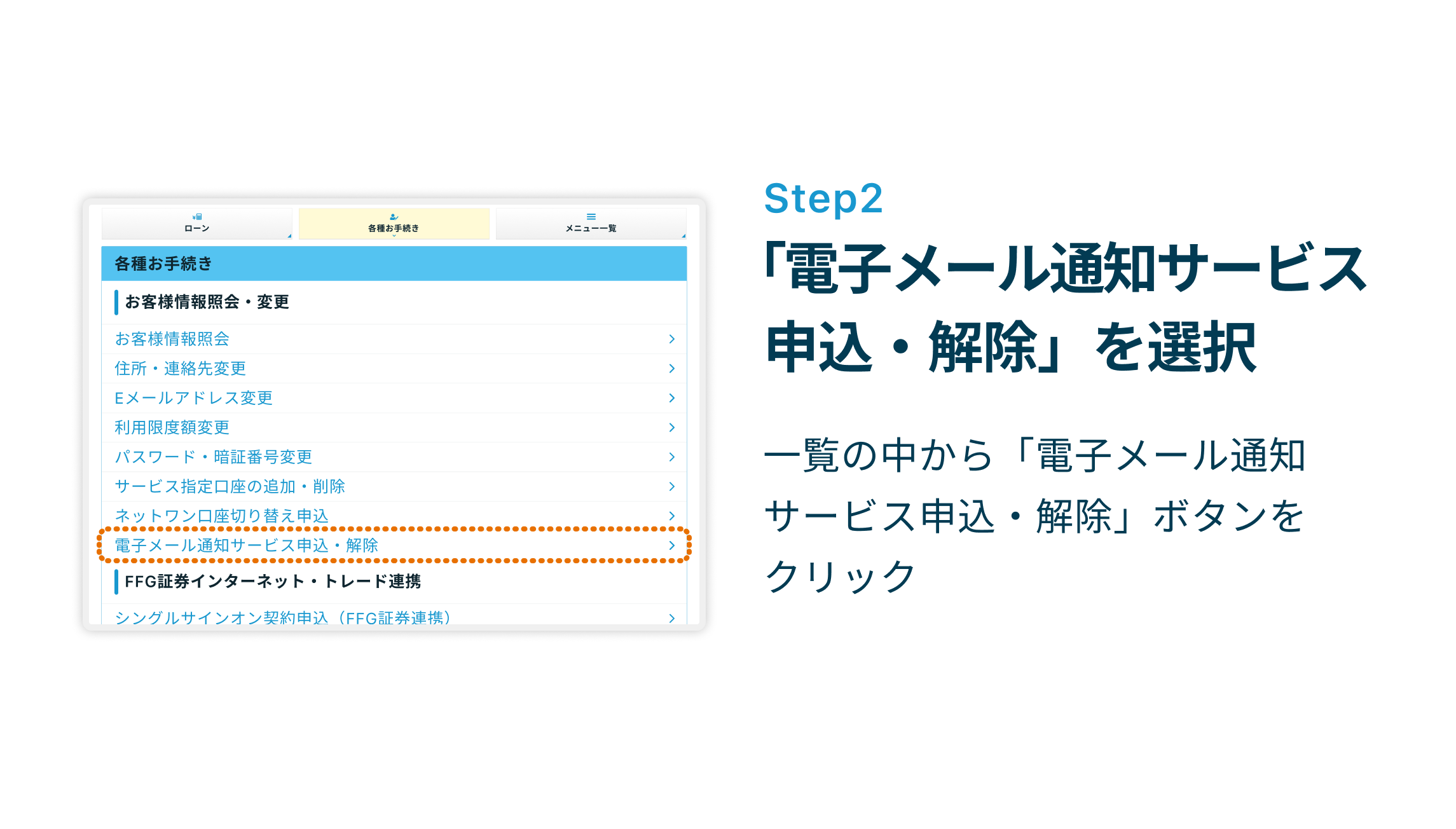 ※電子メール通知サービスの申込・解除はインターネットバンキングにログインしてからおこないます。